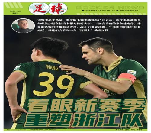 撰稿/左瑞22日下午,本赛季中超将进行第30轮也是最后一轮较量,浙江队将在主场迎战青岛海牛。这场比赛既是2025赛季的完结,也是队长弗兰克·安德里亚舍维奇的告别战,更是浙江FC重塑竞争力、着眼新赛季的起点。“这场比赛,我们一定会全力出击,回报主场球迷的支持。”分管一线队、负责引援的俱乐部副总经理吴少堃说:“我们和浙江球迷一样,都期待着一支全新的浙江队!”
