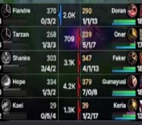 体育资讯10月8日称 外媒统计S赛正赛选手完美KDA数(即一场比赛中0死): 1.Faker:147场/27场完美KDA 18%0死率 2.Gumayusi:64场/26场完美KDA 41%0死率