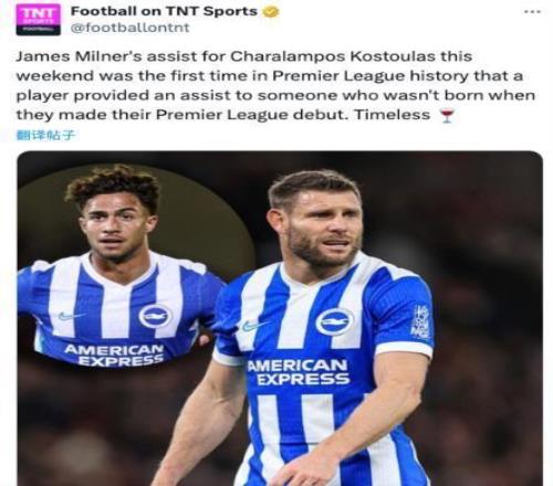 虽然上周末的英超联赛,布莱顿在老特拉福德球场2比4败给曼联,但是在比赛进入第92分钟,布莱顿阵中老将米尔纳在右侧开出角球,海鸥军团小将科斯图拉斯头球破门,这一进球连线,造就了欧