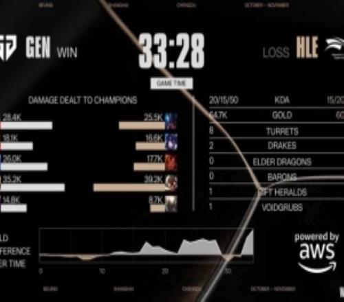 体育资讯10月28日称 2025全球总决赛淘汰赛今日开战,首场较量由HLE对阵GEN! 赛后数据: 选手阵容: GEN:Kiin、Canyon、Chovy、Ruler、Duro HLE:Zeus